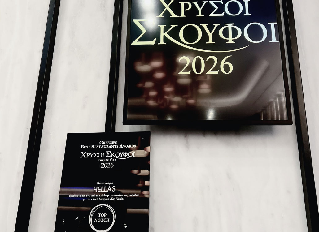 Μια ακόμη σημαντική στιγμή για το Hellas Restaurant. Η διάκριση Top Notch 2026 από τους Χρυσούς Σκούφους του @athinoramagr έρχεται να επιβεβαιώσει τη σταθερή μας πορεία στον χώρο της σύγχρονης ελληνικής γαστρονομίας.